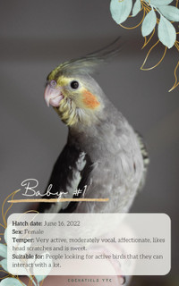 Call to confirm details of birds for sale before purchase. In search of Healthy baby hand tamed cockatiels all colors straight out th. Searching for hand tamed baby cockatiels.